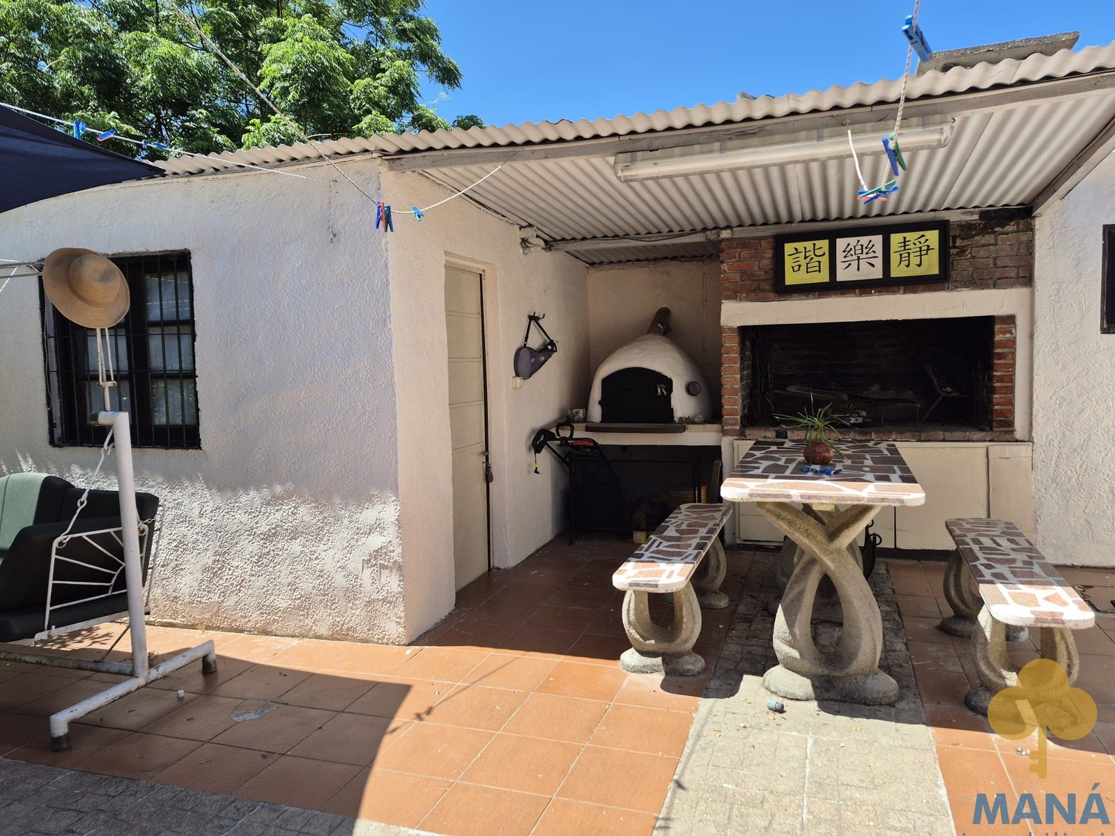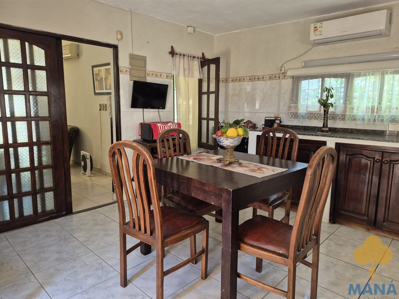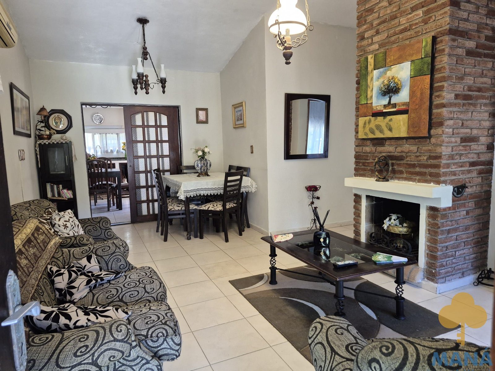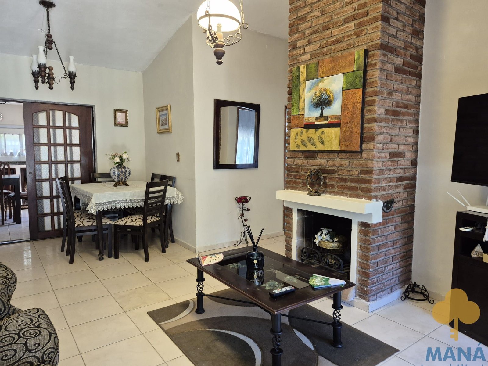Living comedor con estufa a leña, amplia cocina comedor definida con placares bajo mesada.