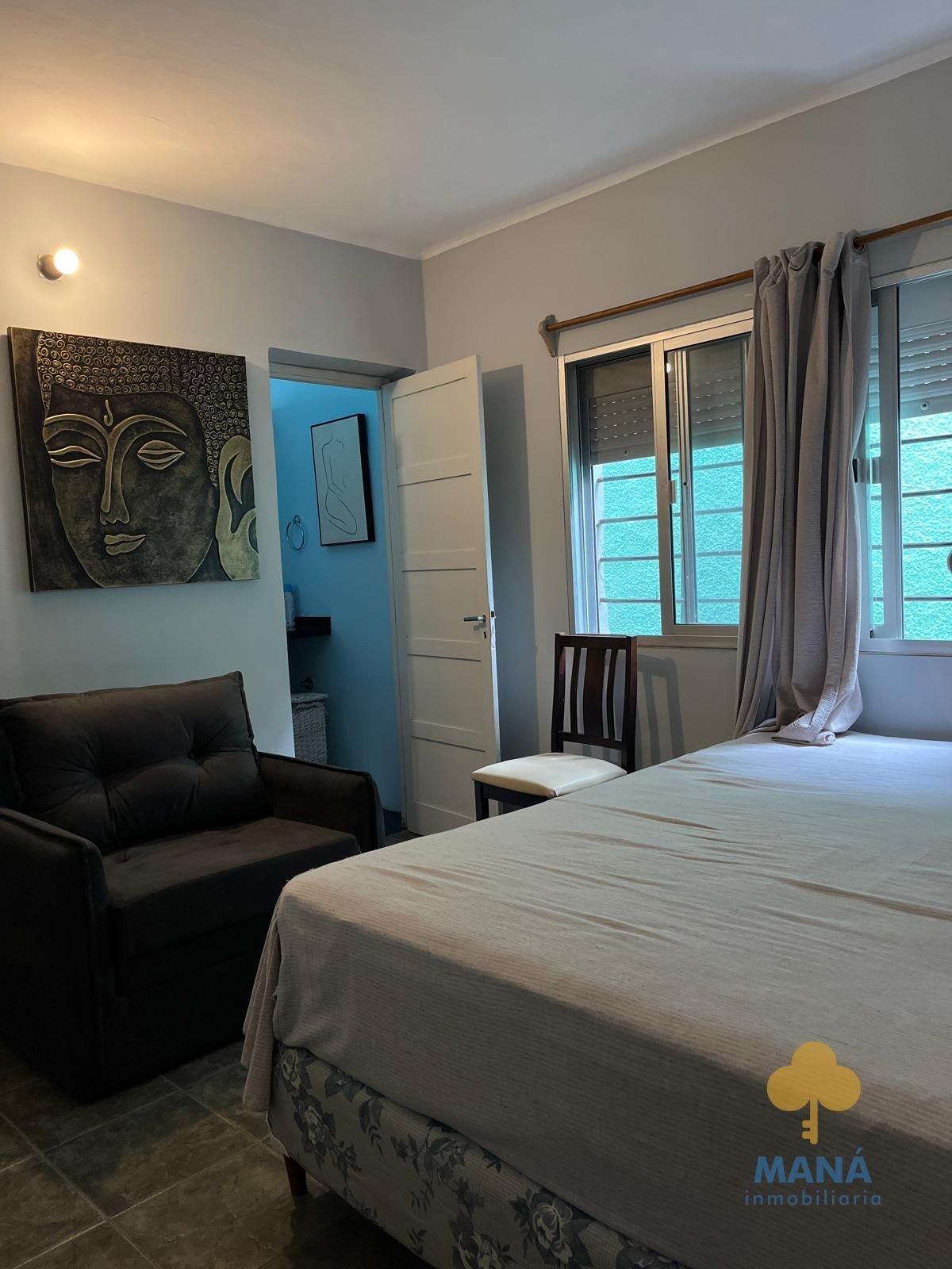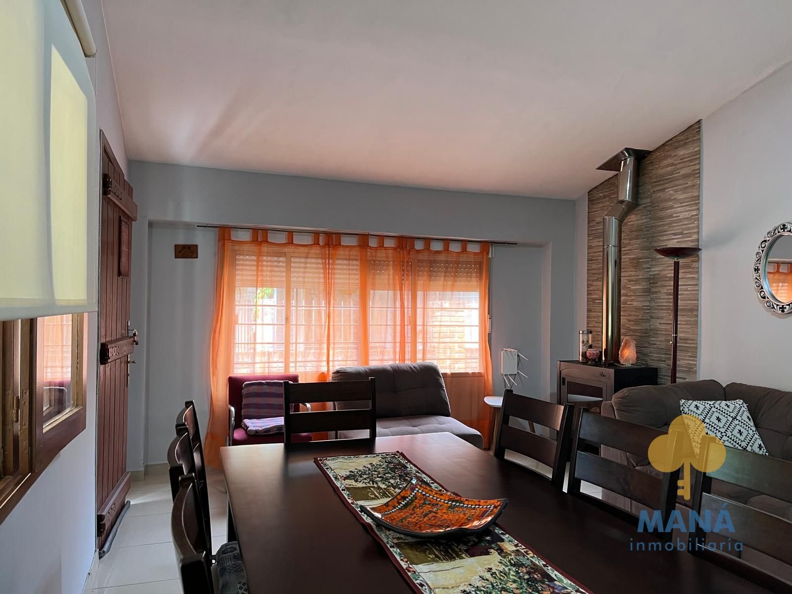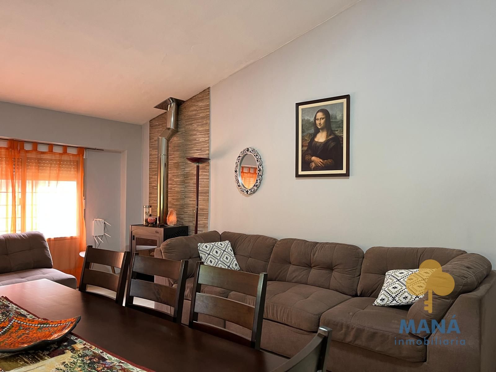 Amplio living comedor con calefactor de alto rendimiento y cocina con office con placares empotrados.