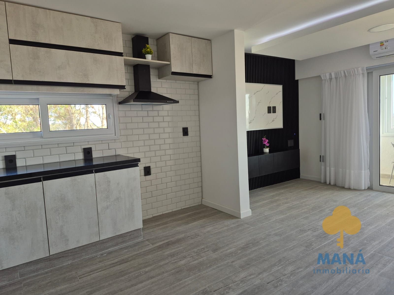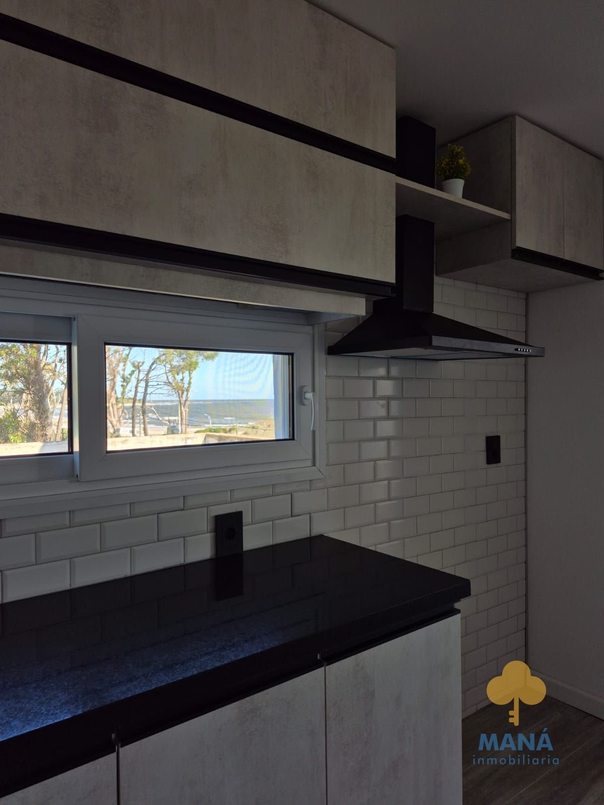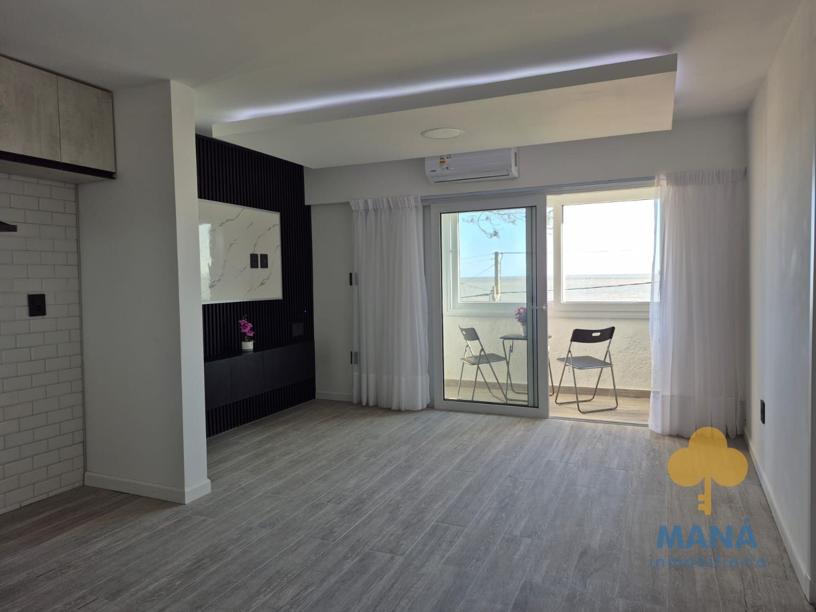 Living con grandes ventanales con vista al mar, cocina integrada con placares de excelente calidad, bajo mesada y aéreos, también con vista al mar.