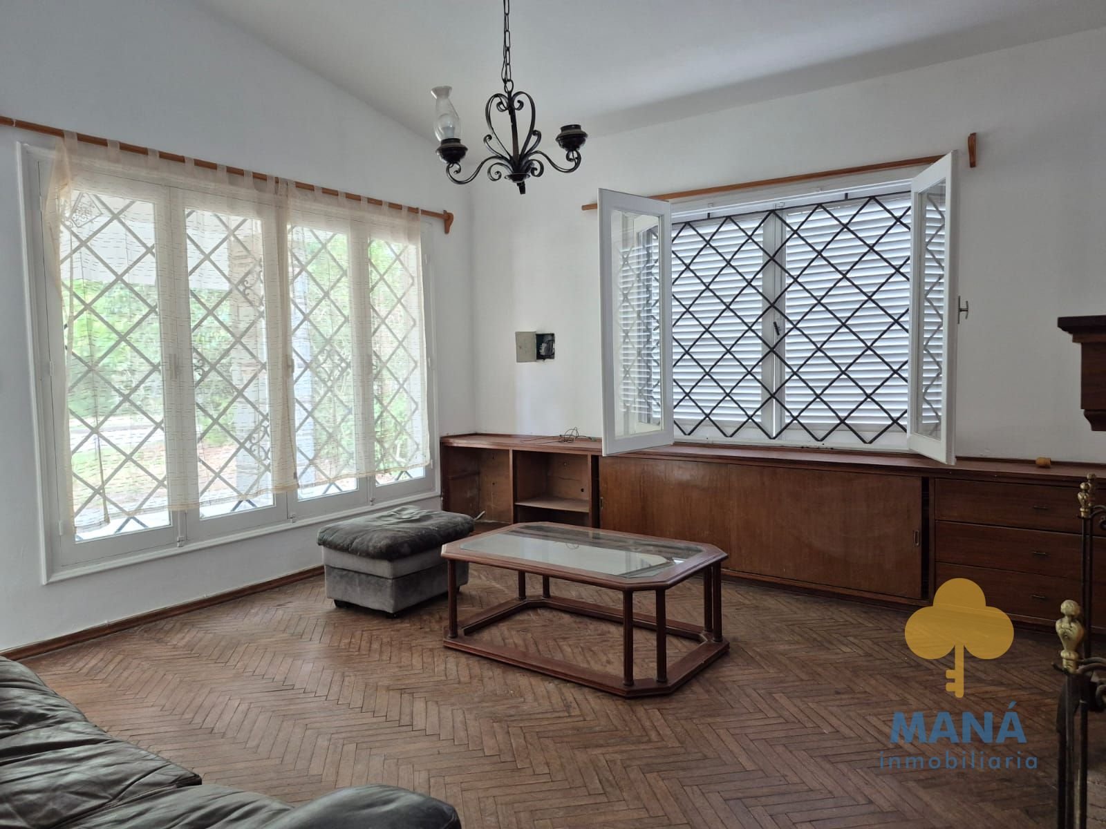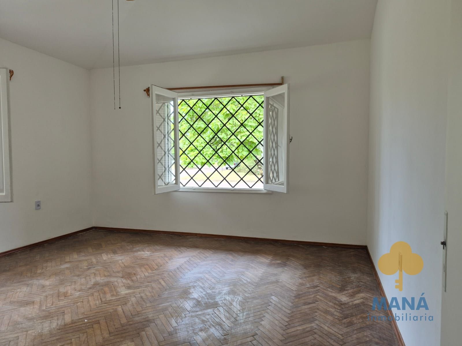 Aberturas de madera con postigones y rejas.