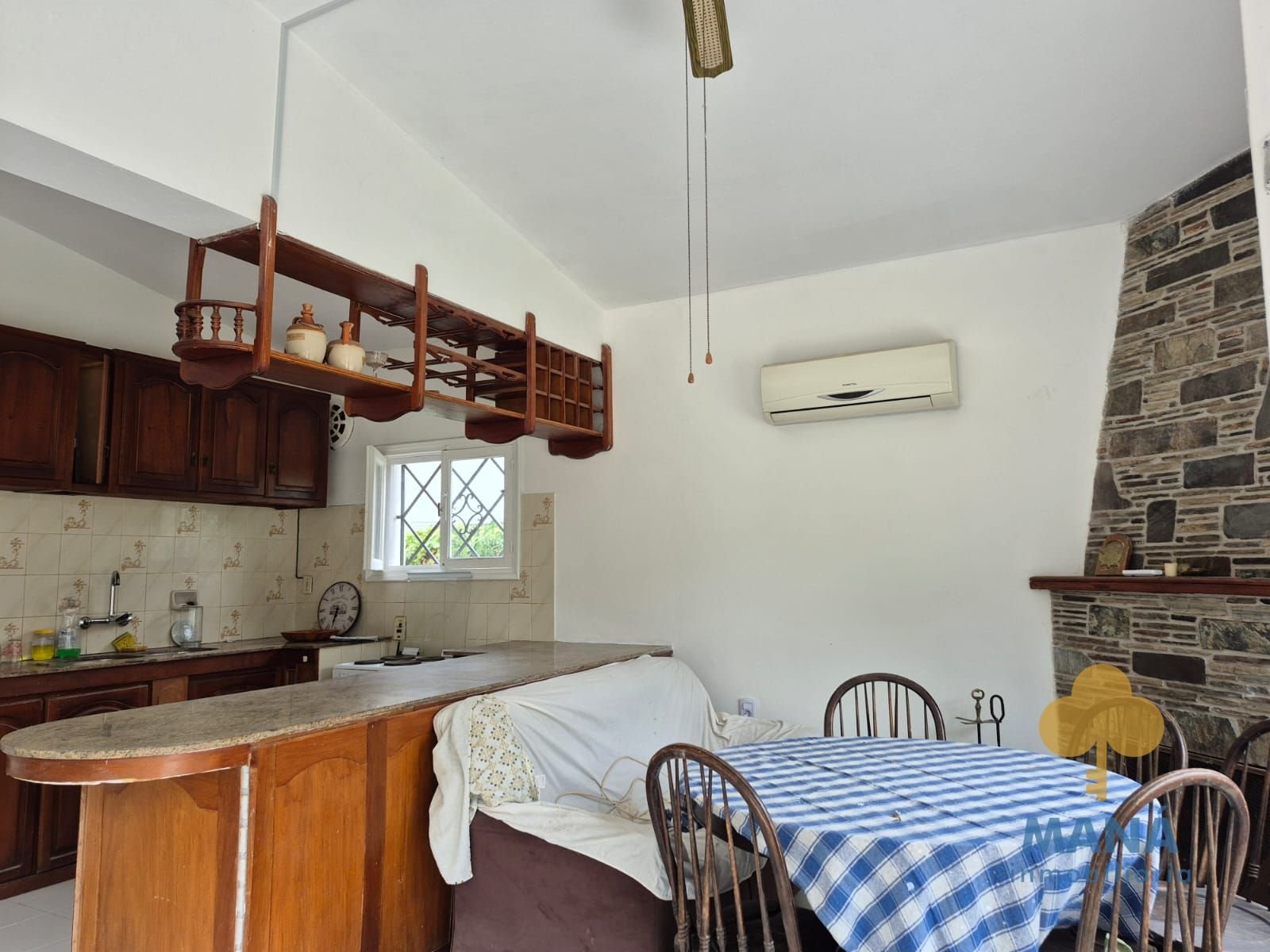 Amplio living con estufa a leña, luminosa cocina comedor definida con estufa a leña, placares bajo mesada, muebles aéreos e isla.