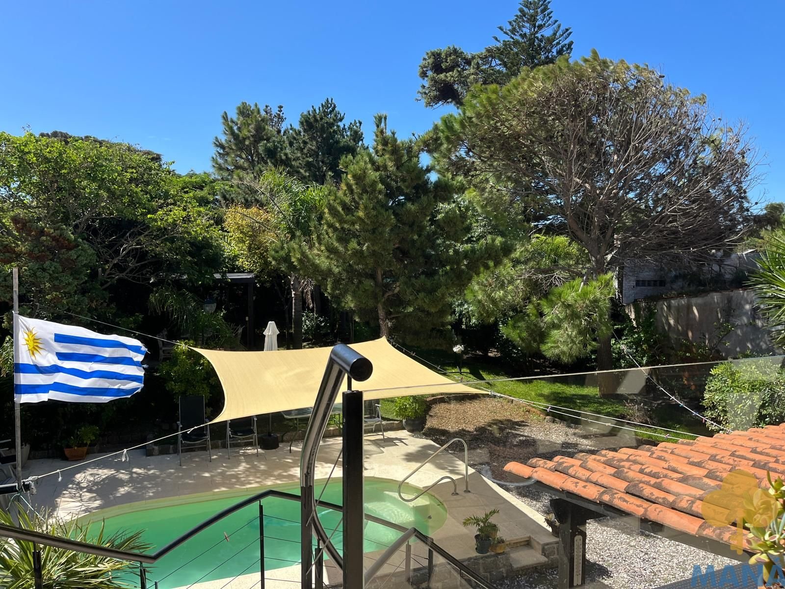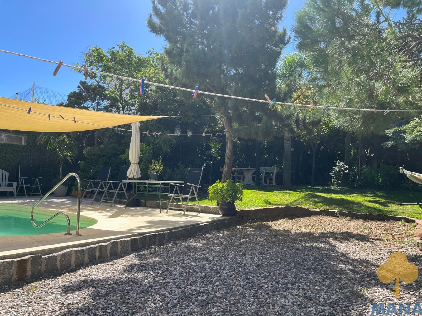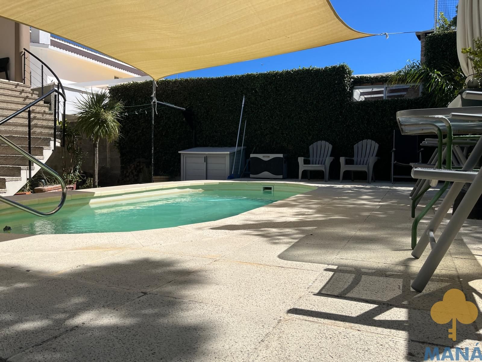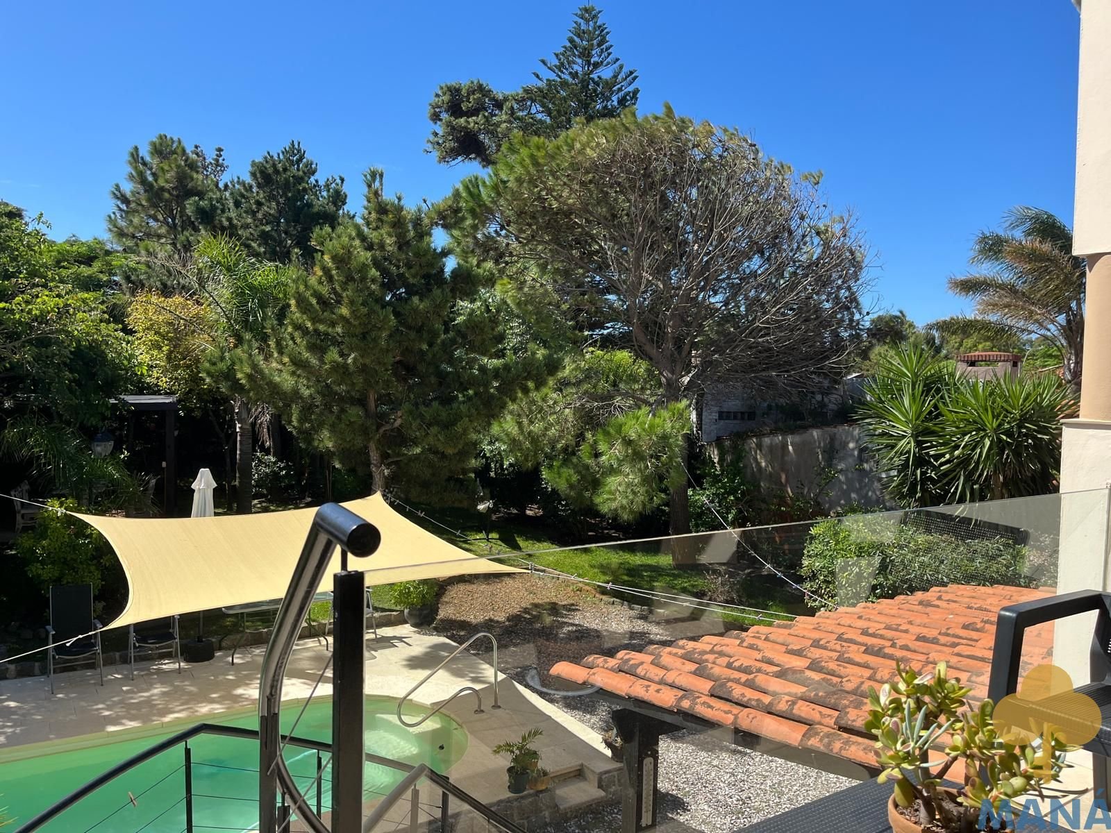 Jardín al frente con portón automatizado y jardín posterior con piscina climatizada y pérgola, creando un entorno privilegiado para disfrutar al aire libre en todas las estaciones, ambos con un excepconal parquizado y cuidado con sistema derigo.