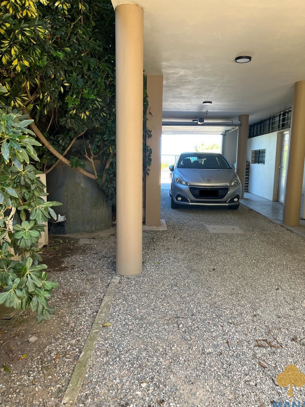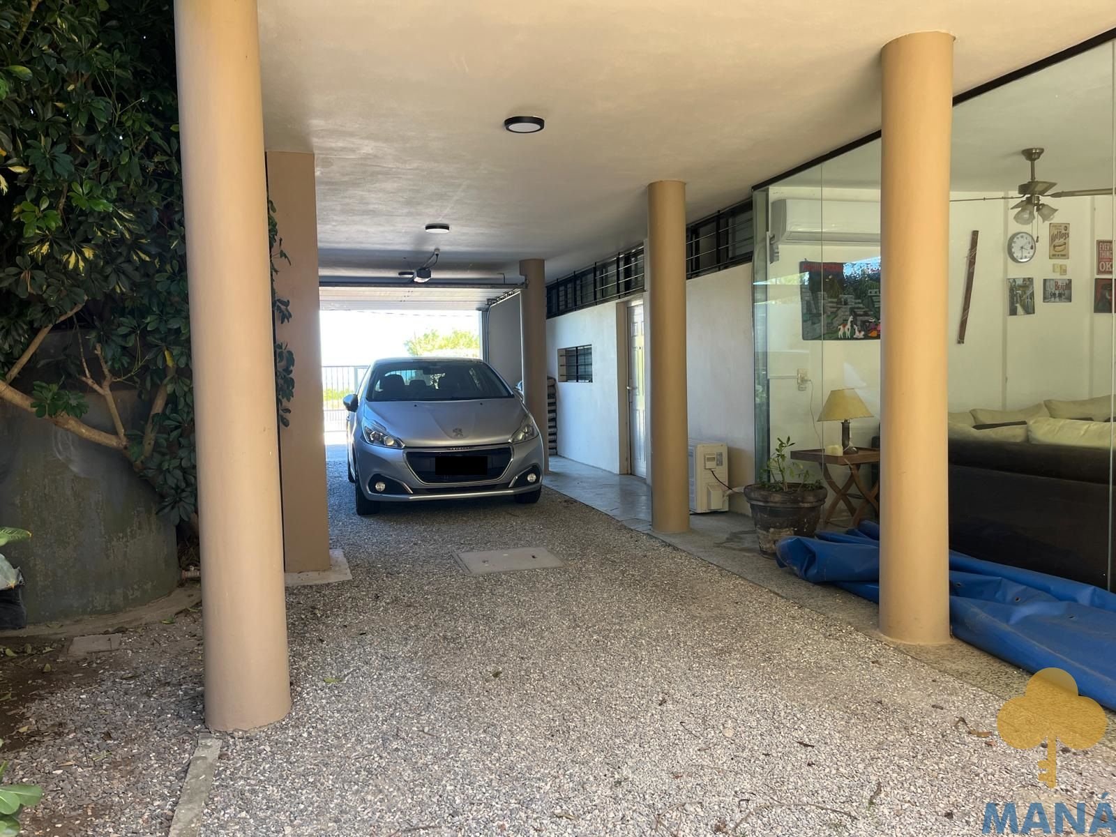 Cochera techada para varios vehículos con portón automatizado.