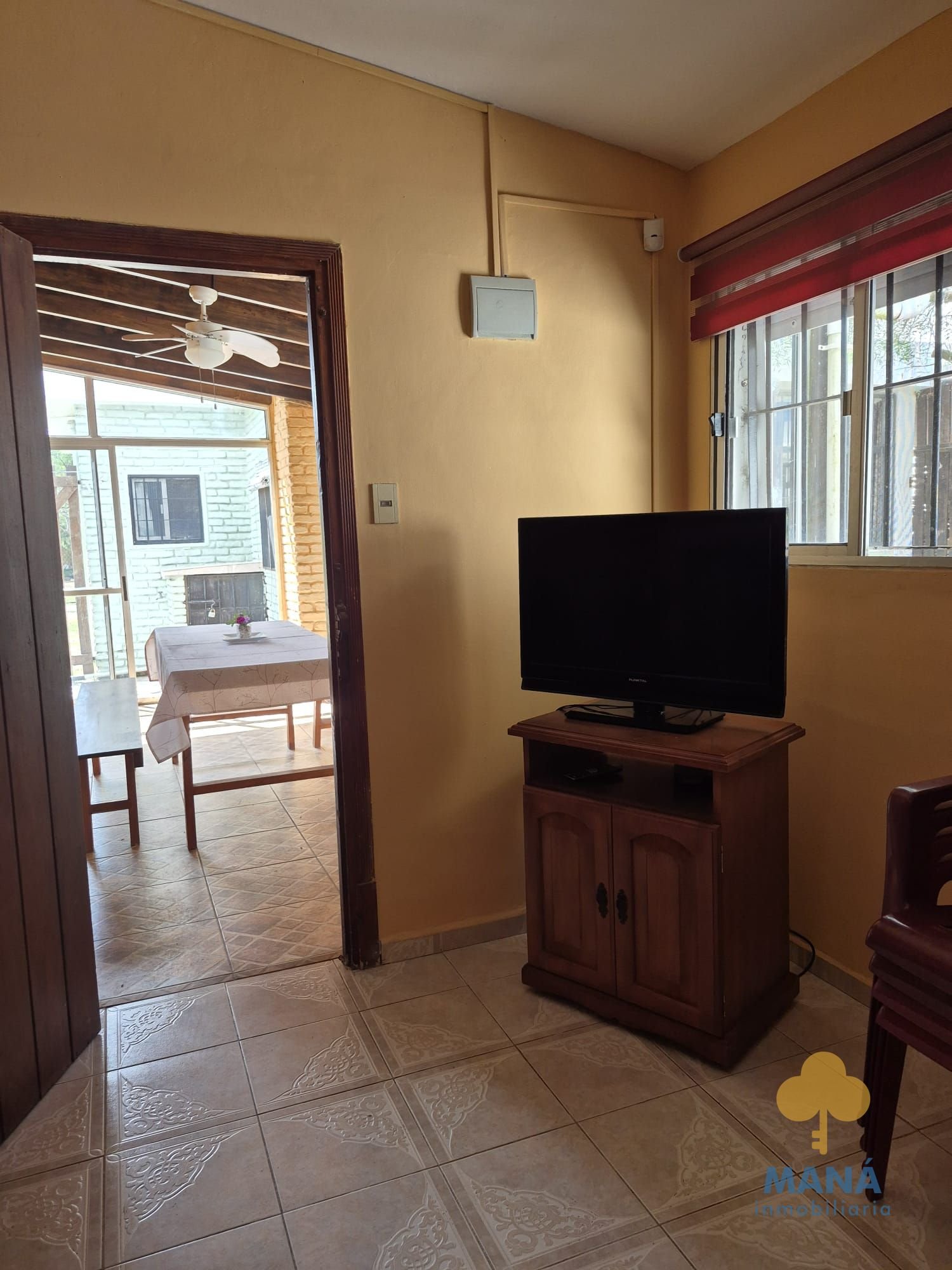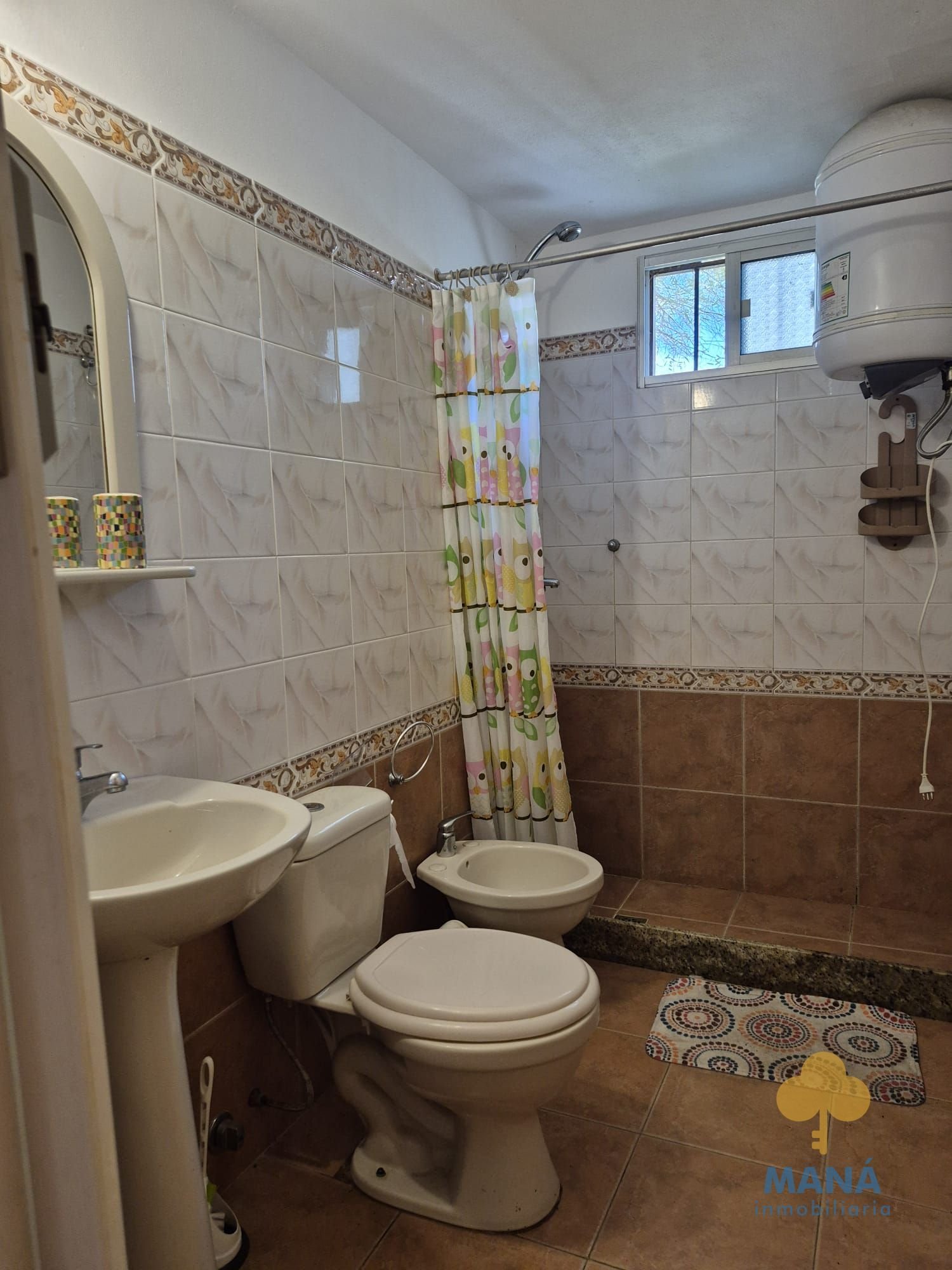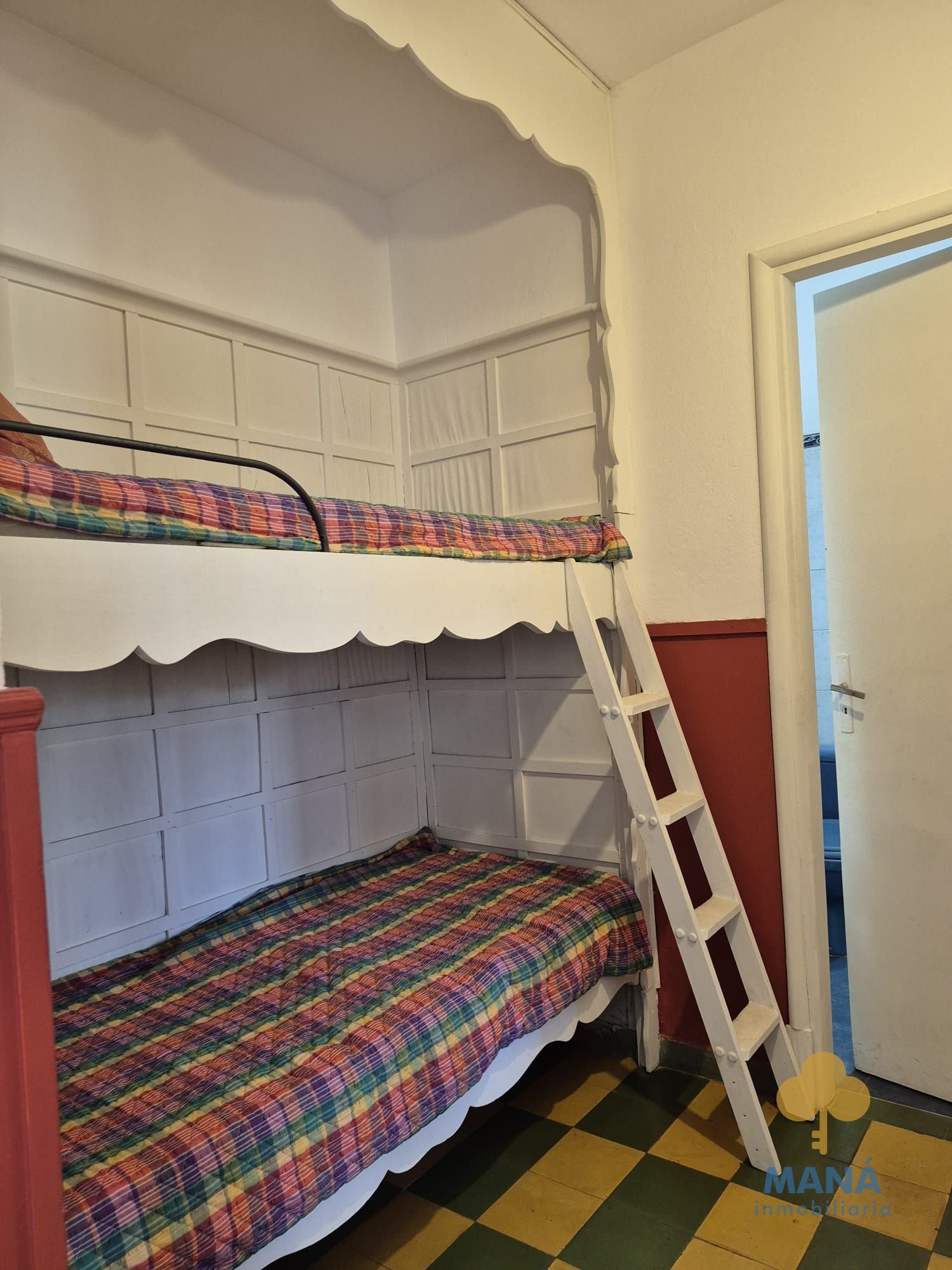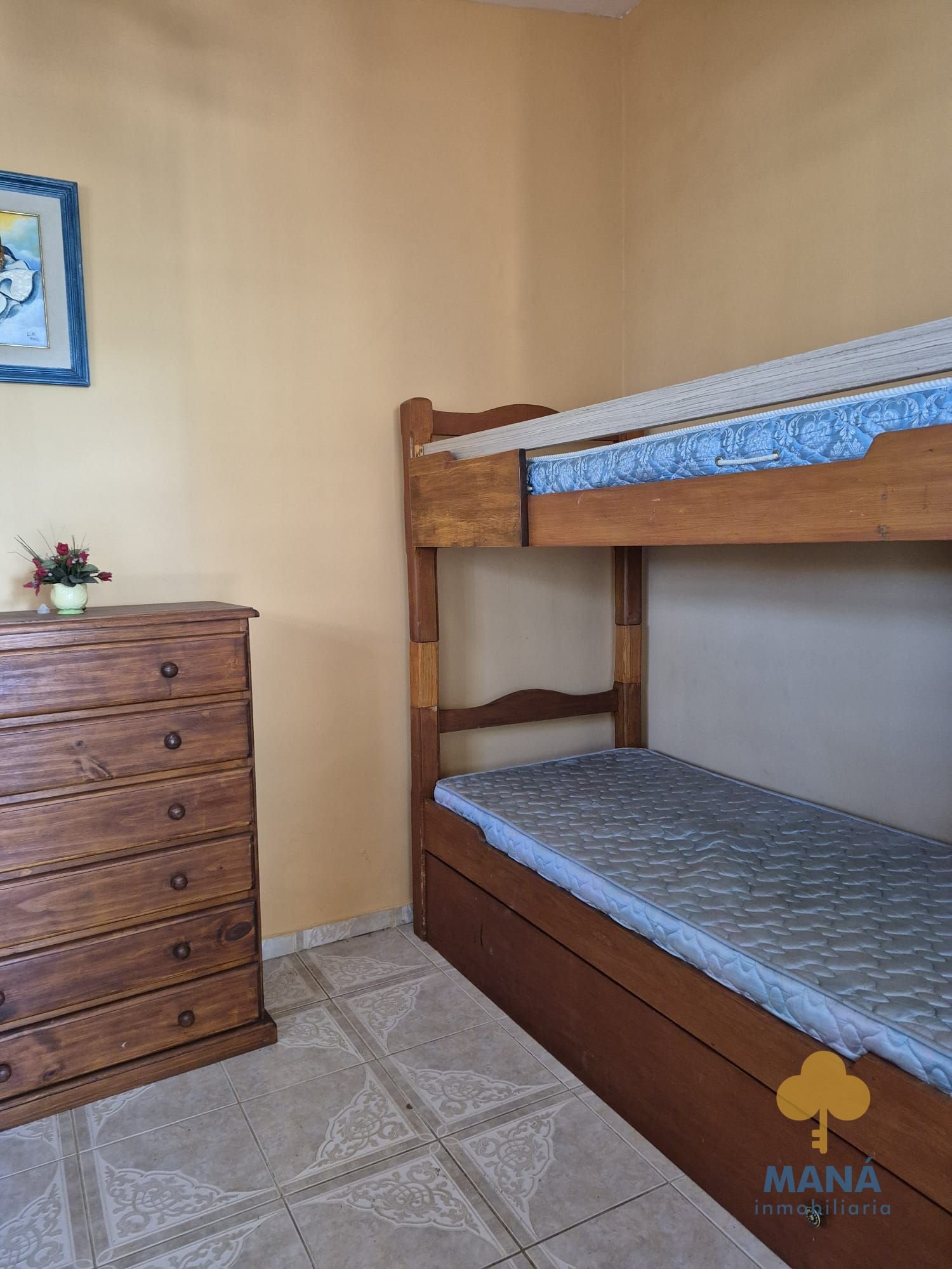 Dormitorio principal con placard empotrado y aire acondicionado, medio dormitorio con cuchetas y baño completo.