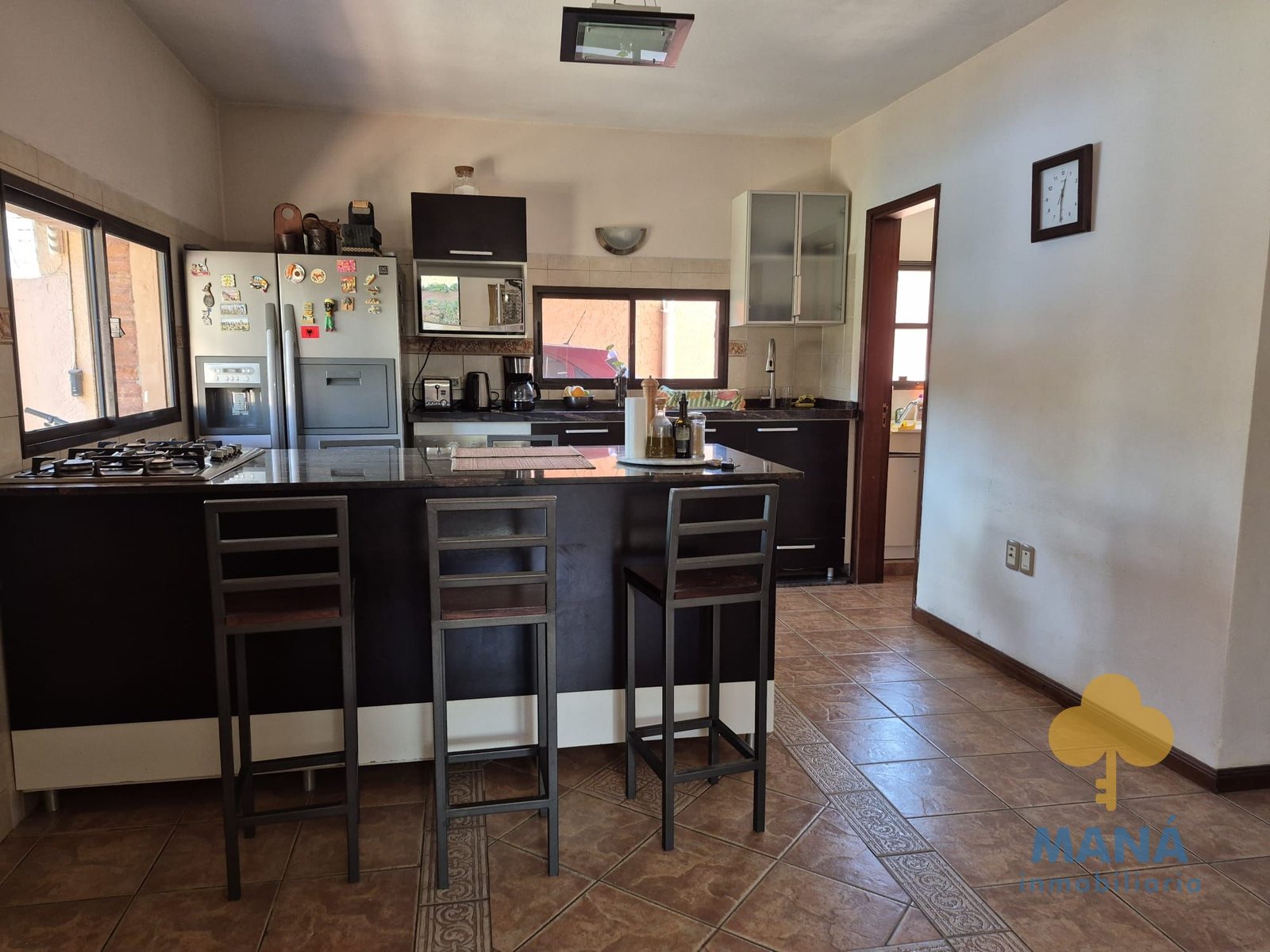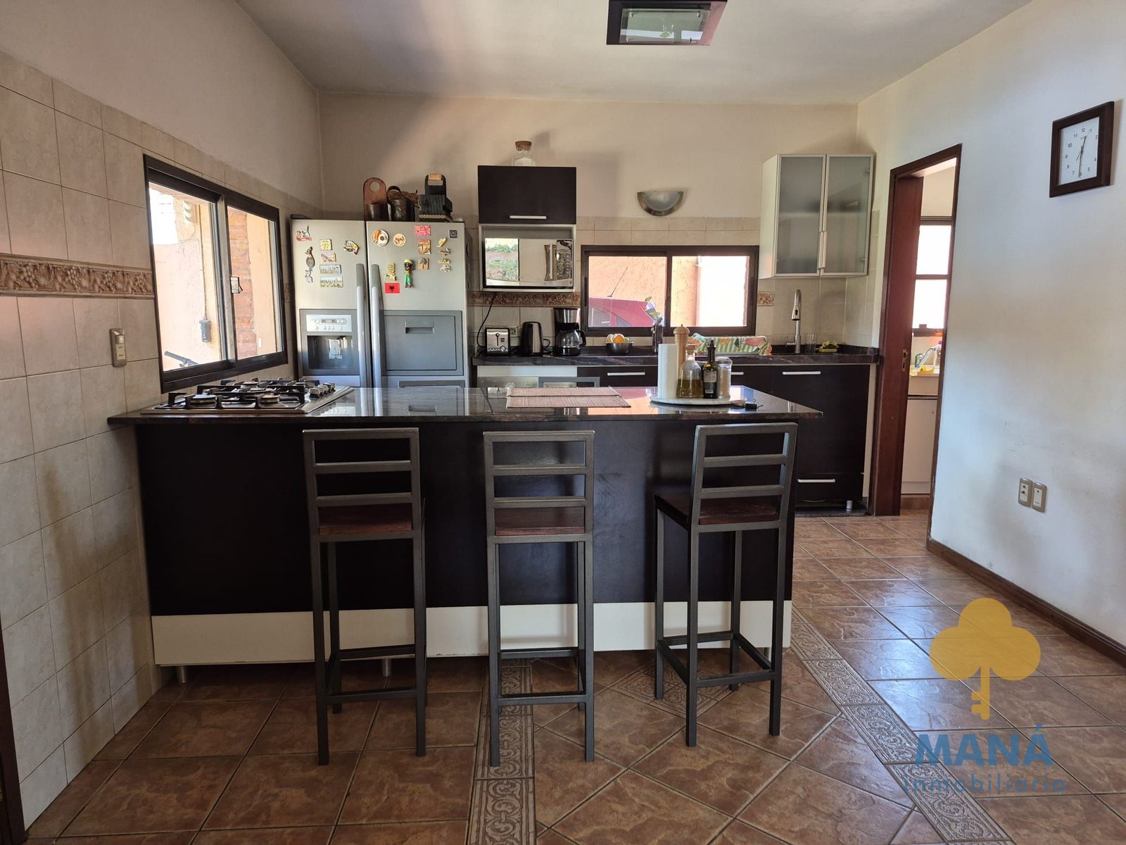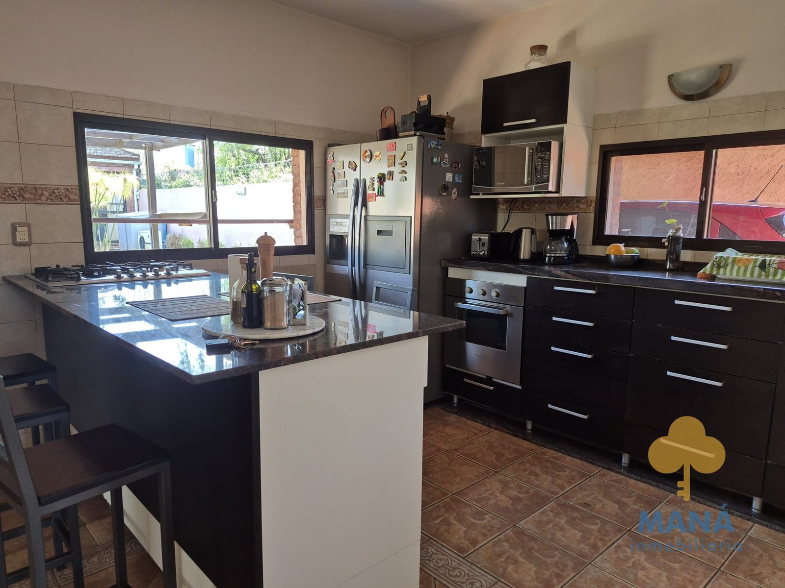Gran living comedor, cocina comedor semi integrada con horno, anafe e isla.
