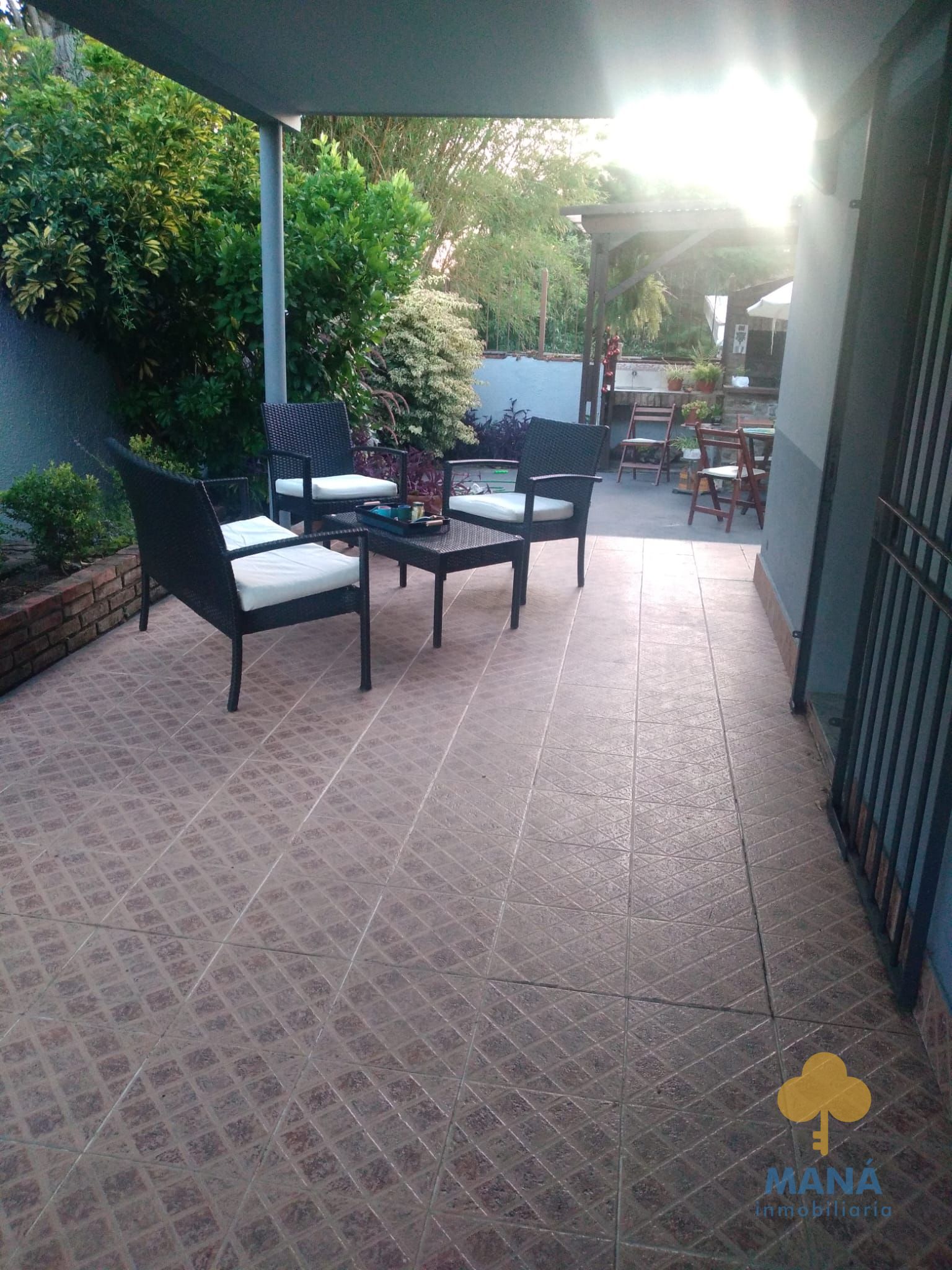 Fondo con parrillero techado.